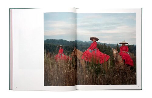 In the sport of escaramuza, all-female precision horse ridings teams execute daring manoeuvres whilst riding sidesaddle and dressed in traditional attire. Constance Jaeggi travelled across the US to document this Mexican tradition by photographing participants and recording their stories. As an outsider to the culture she invited Mexican-American poets ire’ne lara silva and Angelina Sàenz to create prose in response to her work. In the forthcoming book Escaramuza, their poetry is displayed alongside Jaeggi’s photographs to collectively impart the layered and complex narratives of the escaramuza tradition.