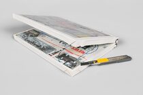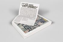 The design was inspired by a tightly taped, neatly formed package sent to the magazine by Anotani containing his printouts—an idea that found its way into the book itself which comes as an entirely sealed entity. The title “DEFORMED” is part of the idea to create a misshapen book that evolves along the process of coming into existence. Building on the concept of clashing, of creating and destructing the final product, something new—a chaotic bricolage of “printed junk”—is born.
