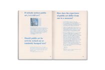 The images in this booklet have their magenta and yellow channels removed and are printed only in cyan and black on recycled paper that yellows quickly, resembling faded prints that are left outdoors for a long time, like those found in old barbershops or “mama shops.” With this, we hope that despite the momentary nature of the project and exhibition, this documentation circulates a long-lasting intent to bring art and ideas outdoors to the public.