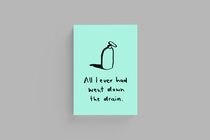 In this humorous collection of drawings, the Swiss illustrator, animator, and visual designer writes one-liners to accompany sketches of drains, faucets, household cleaners, and rubbish. A cleaner cloaked by a washcloth next to a simple drain seems resigned as it says, “I constantly worry about my liquidity”. Spilled toothpaste and a leaky foam pump rest on their sides, exclaiming, “But instead we got wasted”. A hand soap dispenser gazes pensively into the bathroom mirror. Pascale Osterwalder’s artistic projects and commissioned work in the field of literature, culture, and music often focus on imparting knowledge, especially for young people.