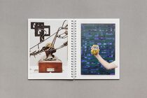 Begun on Instagram in 2017 as part of Bader’s exhibition at Museo Madre in Naples, @rt_rhyme is a series of photographs that pair artworks (identified by artist (sur)name) with various rhyming objects or actions: spoons in front of a Koons, cobble held next to a Schnabel, Sherman matched with some German and a crawl below a Saul. Some rhymes are easy to decipher while others require a good unpacking. @rt_rhyme continued posting on Instagram through the end of 2018 but the project remained incomplete, in part due to an exhaustion of funds as well as some rhymes proving very difficult to photograph. This book collects the @rt_rhyme photographs, the list of unrealized rhymes (two of which have been digitally realized by the publisher for inclusion in the book) and an introduction by Bader.
