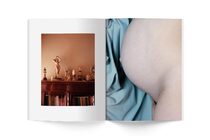 The book contains a body of new work and never before published fashion and documentary photographs. Childhood friends, colleagues and models are collaborators to Weir, and their input has been vital when constructing her work and interpreting the theme. The models Jess Maybury and Lily Newmark , who have starred in previous works, are here captured as Mary and Child. Likewise, the stylist Camille Bidault-Waddington appears in a diptych beside her son Albert Cocker, also evoking Christian iconography. Harley’s childhood friend appears in a series of self-portraits depicting his experimentation with womanhood through crossdressing, published alongside private emails to his lover. Inspired by the multi-media artist Colette Maison Lumiere and her exploration of gender roles imbued in interiors, self portraiture and performance, Weir has created a series in collaboration with set designer Emma Roach, overpainting each of the images. A number of suggestive still-lifes appear throughout the book exploring the function of sexiness and the body as a commodity. The ending is a series of photographs documenting the labour of birth giving the viewer an encounter with the place with which we all came from.