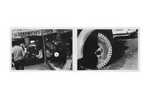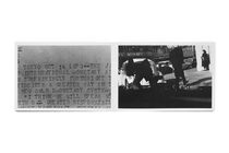 In 1971 photographer Takuma Nakahira participated in the Seventh Paris Biennale for emerging artists from around the world. In his experimental project Circulation: Date, Place, Events Nakahira challenged himself to photograph his surroundings and in the same day exhibit the results for a duration of approximately one week. Indiscriminately documenting everything he encountered — the Parisian streets, the people and cars that came and went there, all manner of posters and printed matter, the installations in the Biennale including the constantly evolving display of his own work, the underground passageways of the subway, news wire reports transmitted by teletype machines, the constant flow of images on television, his room service breakfast in his hotel room and drying underwear — Nakahira exhibited the photographic traces of his daily experiences of Paris within each day. As the photographs proliferated day after day, the exhibition wall could no longer contain them, and Nakahira spread them onto the floor.
