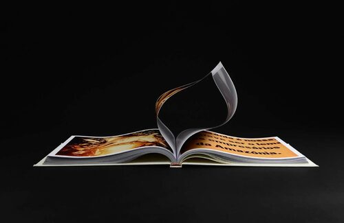 - Hardcover with French folds