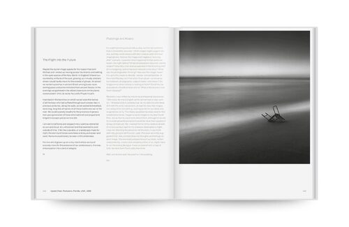 This book brings their work together in a profoundly personal collaboration: more than sixty of Kenna’s prints, each accompanied by short texts both from Iyer and Kenna himself. Kenna’s work—minimalist, often made in long exposure—captures fleeting moments of calm and clarity: a fog-bound canal in Venice, a deserted jetty in Mallorca, a line of trees dissolving into snow in Hokkaido.
