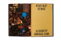 Money Must Be Made is a hardcover publication, each cover is handmade and unique, collaged by Vitturi with recycled off-cuts of various fabrics, vinyl’s and leather. The Nigerian writer Emmanuel Iduma has written an accompanying glossary as a way to navigate through the book and it’s many voices, based on his experiences growing up in Lagos.