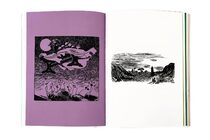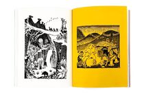 The book is flush-cut hardback with screen-printed covers and a fabric-textured spine, and then housed in the green cloth-imitation cardboard slipcase. Inside there are 280 pages of illustrations. Some are printed so big they carry on around the page end and on to the next. Others are so small the we made a magnifier to see them!