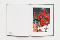 Hasegawa work is notable for incorporating Japanese, Indian, South-East Asian and African mythology, combined with homo-erotic depictions of hyper-masculine men, in acts of BDSM.
