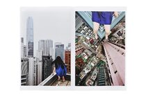 高所から水平に都市を望む視点と、その足もとの虚空を見る視点ーー