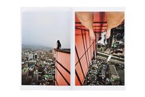 高層ビルの屋上や先端にあって下を見下ろすその姿は、圧倒的な緊張感と浮遊感に満ちている。