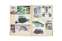 「17 年前,我們的孫子 Jaap 出生了,於是開始製作了 Jaap 的動物書。我以 OASE 雜誌作為整本書的主體,鬆散地插入了從報紙、雜誌剪下的關於藝術、文學與科學的動物圖片。然後 Zeno 出生,同樣的事情發生了:Zeno 的動物書。現在我同時在製作兩本書,之後是 Anna、Julian 和 Luca。此時,有五本書正在製作中,但這五本書都還沒有完成。孩子們和我都喜歡看到這些微小的片段不斷變化、調整和添加。再開始製作時,我從未打算將這些剪貼下來的成果公開,更別提出版。然而現在它結合了五個孫子的動物書,成為了一本巨大書籍,因為別人說服我,它們值得這樣做。」