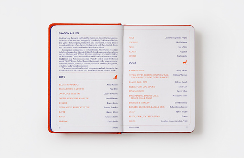 - names of artists' pets: Fat Fat & Cous-Cous (Louise Nevelson's cats), Giotto and Goya (John Baldessari's dogs)