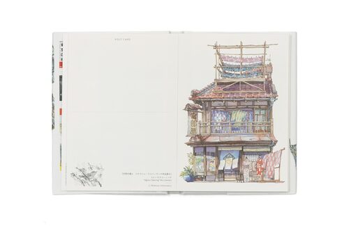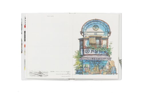 空想の街並みが描かれた、厳選のポストカードを収録