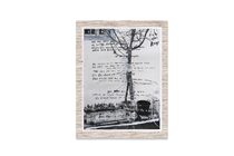 It brought photographer van Drimmelen to focus on small and intimate details such as an animal shape formed by metal wire, debris that they found on the beach. Or the face they encountered in the deteriorating wall of a deserted hotel in an empty bay of the island. The photographs were then painted on by Krabbé to add an otherworldly second layer. The unexpected combination of paint and photo, sometimes with poems of Krabbé, collaged directly to the surface.