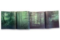 他以過期的 Portra 底片拍攝,也使用古老的木製大畫幅相機進行多重曝光,將所見的樹木、蕨類、河流映射出青瓷、紅銅及黛綠等幽深神秘的色調,再將象徵著「童心」的兩名孩童影像曝光於幾幅照片之中,令觀者在翻閱過程中掉入他所創造的迷霧幻境中,跟著一同尋找妖精穿梭在森林中的身影,好似作了一場深秋之夢。