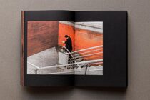 With the colour orange in a leading role, David’s work faces the viewer against this brick wall, drawing him into the atmosphere of a stifling and hypnotic mental state.