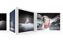 「我在拍攝的時候,一直偏好拍攝一台被單獨放置的自販機。這可能是代表著我自己的孤獨心境,也是對於現代人懷抱寂寞的一種隱喻。最近的調查指出,美國人感到孤獨的比例比30年前高了5倍,正是因為我們處在這個社群媒體發達的時代。在冬天惡劣環境裡綻放光芒的自販機,其姿態是如此令人憐愛,且如此地鼓勵人心的存在。既是機械,卻也奇妙地有如帶有人性,這樣的風景甚至讓我感受到希望。有自販機的風景也會與時代一起改變,而看著這個風景的人心也會改變,我覺得記錄下這個變化就是我的工作。」——大橋英児 節錄自後記