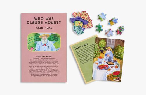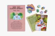 Open the box and step into the world of Claude Monet with a 150-piece puzzle, twenty-four activities, a fact-filled fold-out and an iron-on patch