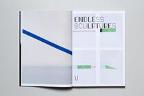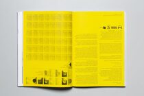 Following a strict methodology, each work or series was placed on a distinctive type of paper—21 different papers in total—one work or series per printing sheet. The sheets were then folded, assembled, and cut to become the pages of the publication. Just like the yellow index section that is bound upside-down, the title is reversed on the back cover, allowing the reader to approach the publication from either direction, emphasizing the possibilities created by the chosen production system. The two different front and back covers, placed next to each other, generating a playful correlation.