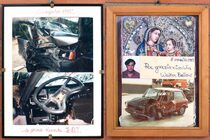 Most people who survive a dramatic ordeal, narrowly avoiding death, are familiar with the urge to thank someone. 'Useful Photography #017 is dedicated to such expressions of gratitude via the form of ex-votos. Frank Kouws discovered a santuary in Italy where the walls are covered in ex-votos, small framed collages, each featuring snapshots of wrecked vehicles and the survivors alongside their handwritten declarations of devotion and thanks.